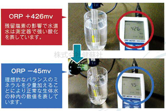 ※この図表に用いた酸化還元電位の数値は、テスターの実測値ではなく、銀/塩化銀電極測定した実測値を基準水素電極数値に修正したものを用いています。